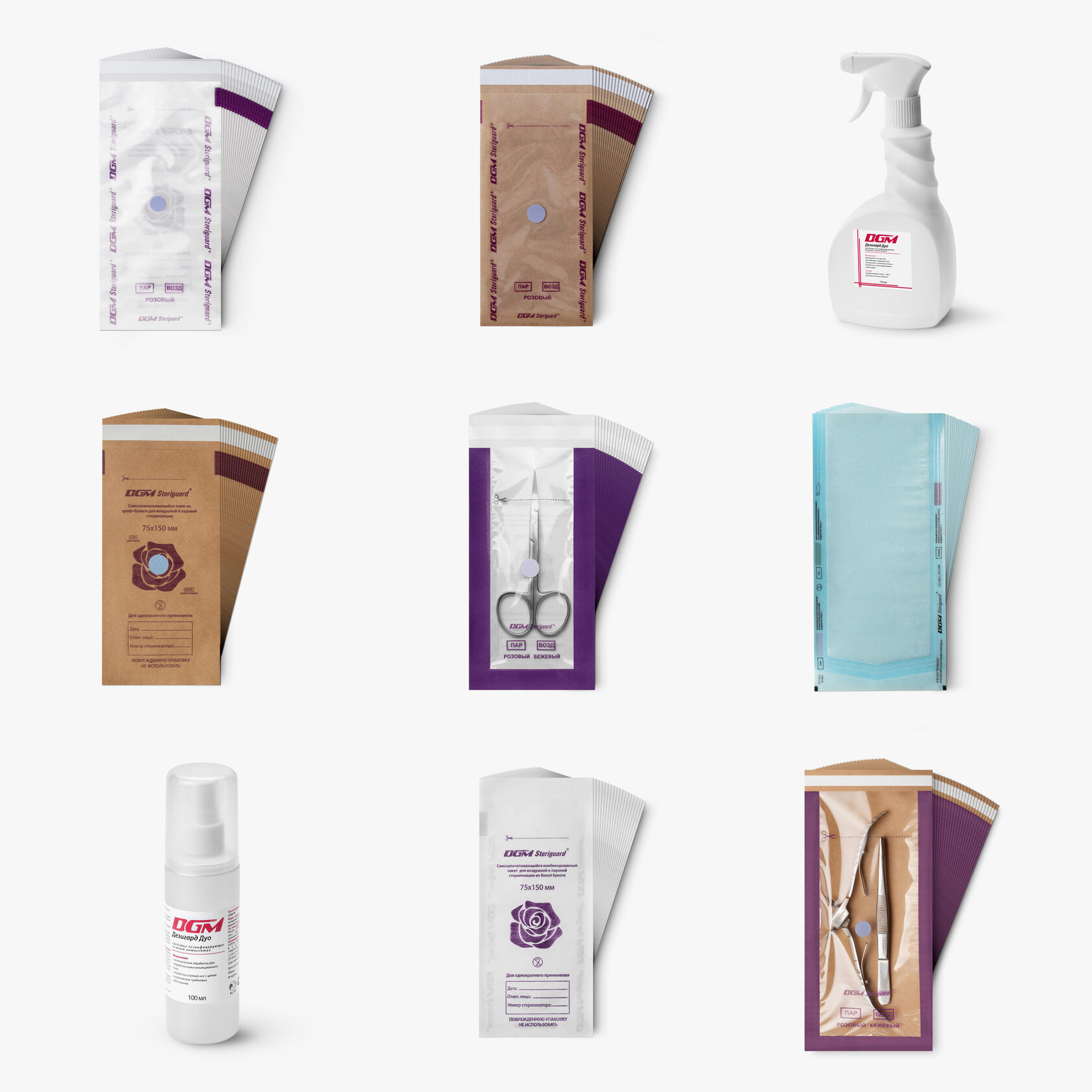 Съёмка пакетов для стерилизаци На втором этапе были сфотографированы комбинированные пакеты для паровой и воздушной стерилизации DGM Steriguard. |